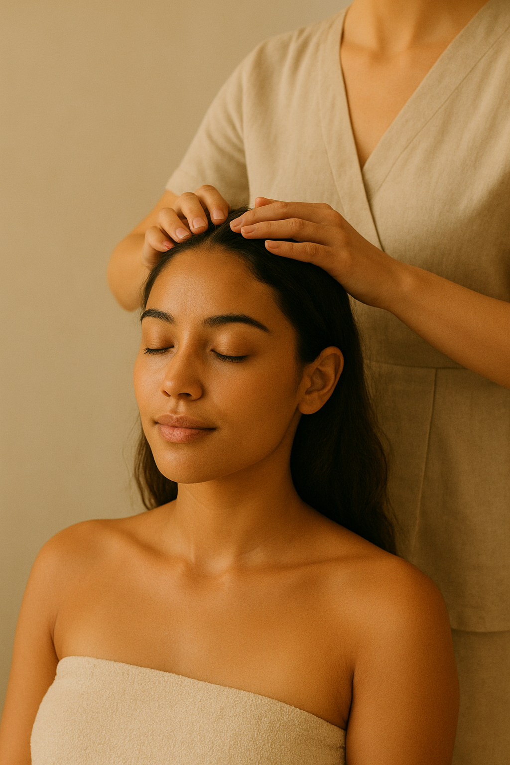 Le massage du cuir chevelu ayurvédique, appelé Shiroabhyanga, est un soin profondément relaxant qui agit autant sur le corps que sur l’esprit.
